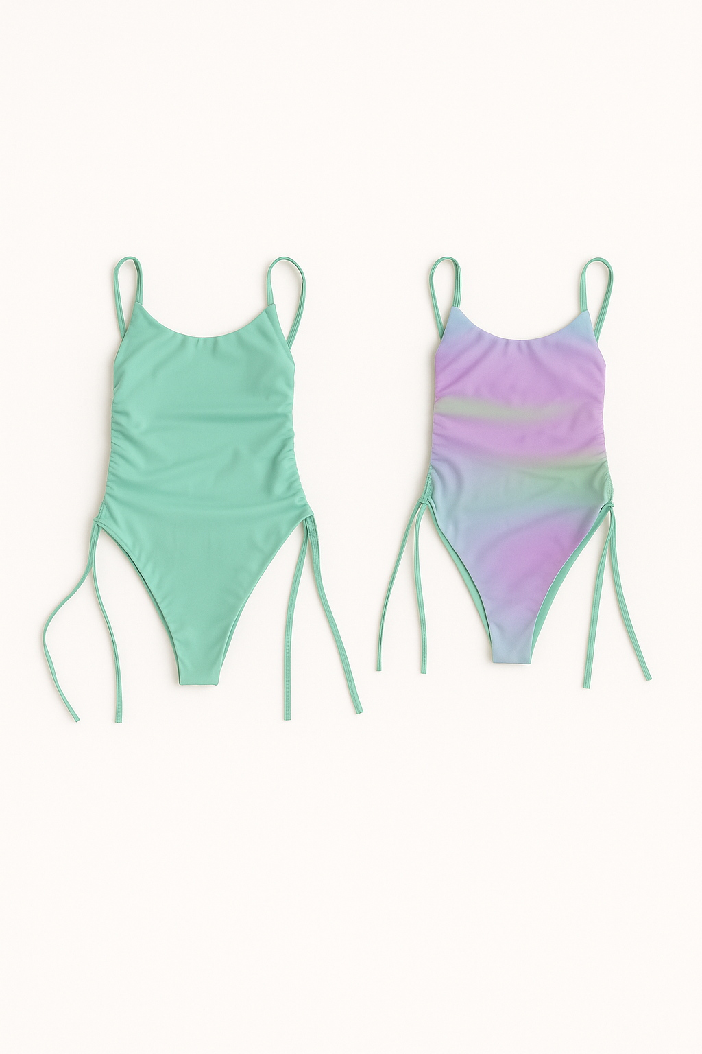 - Descripción: Traje de baño reversible One Piece Dreem Splash, confeccionado en nylon resistente. Su diseño combina un lado en color rainbow y el otro en verde, ofreciendo versatilidad y comodidad.